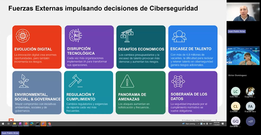 En la segunda parte del webinar, Juan Pablo Arias (Fortinet) presentó herramientas y plataformas que ayudan a que estas iniciativas no dependan del “esfuerzo manual” del área TI.